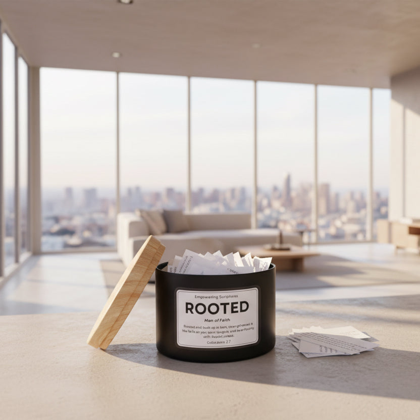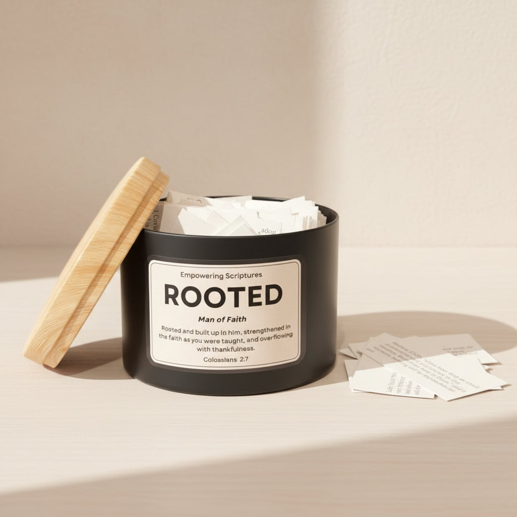 The Rooted Man of Faith Scripture Jar is a daily devotional gift designed to encourage and strengthen men as they walk in faith, lead their families, and face life’s challenges with God’s Word as their guide.
